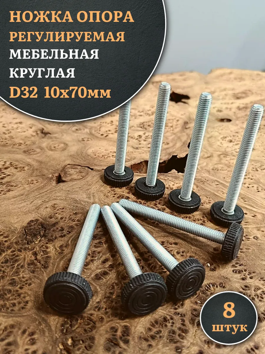 | Ножка опора D32 М10х70 регулируемая мебельная круглая 8 шт | 33-0700ф8 | 1 шт. |
