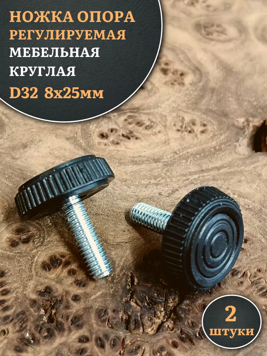 Ножка опора D32 М8х25 регулируемая мебельная круглая 2 шт