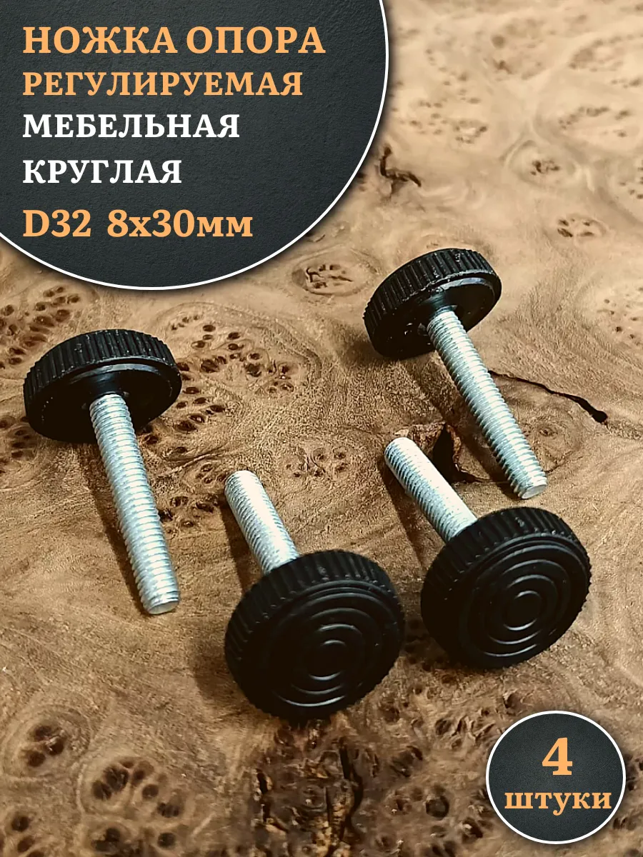 Ножка опора D32 М8х30 регулируемая мебельная круглая 4 шт