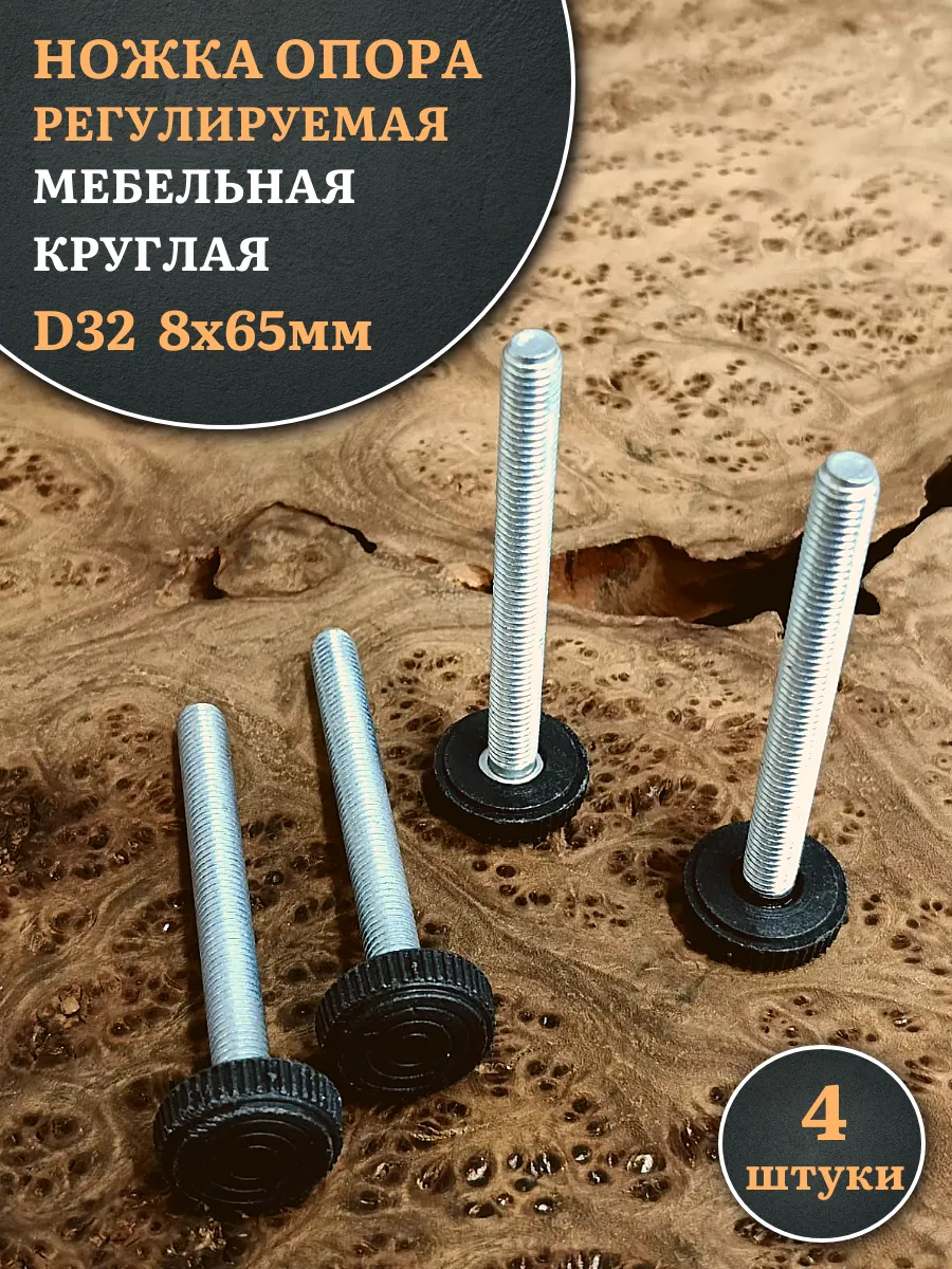 Ножка опора D32 М8х65 регулируемая мебельная круглая 4 шт