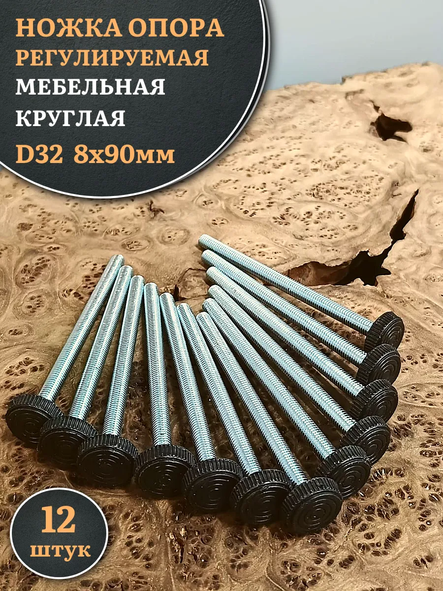 | Ножка опора D32 М8х90 регулируемая мебельная круглая 12 шт | 33-0620ф12 | 1 шт. |