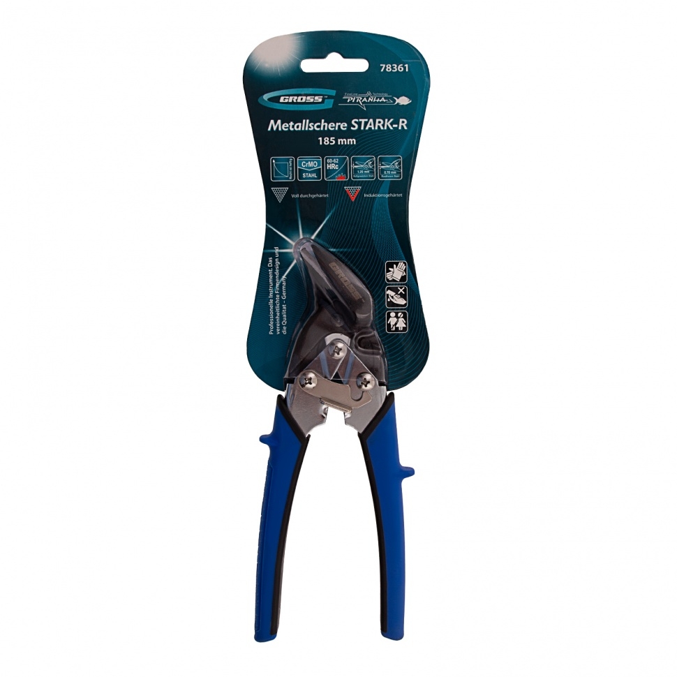 Ножницы по металлу PIRANHA, 185 мм,прямой и правый рез., сталь-CrMo, двухкомп.рук Gross