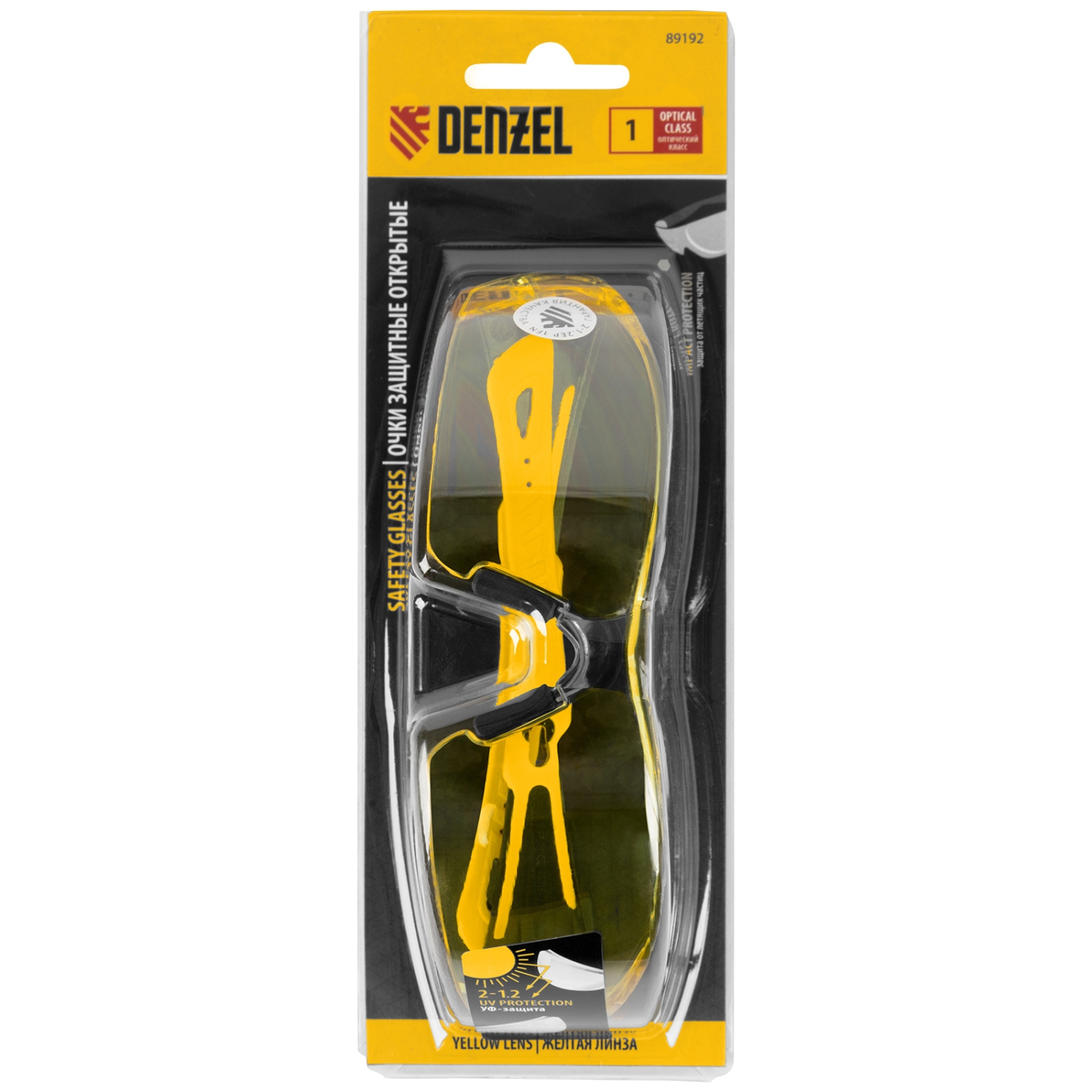 Очки защитные открытые. поликарбонатные. желтые, 2-хкомп.дужки Denzel