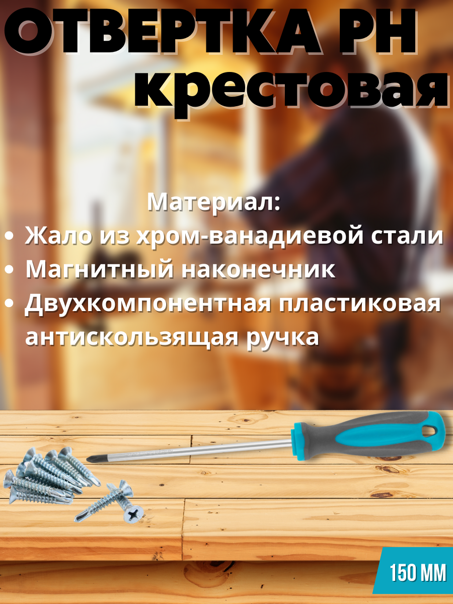 Материал: жало из хром-ванадиевой стали, магнитный наконечник, двухкомпонентная пластиковая антискользящая ручка.