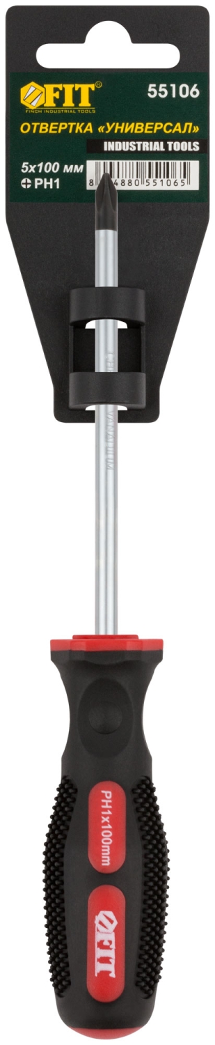Отвертка Универсал, CrV сталь, прорезиненная ручка, Профи 5х100 мм РН1
