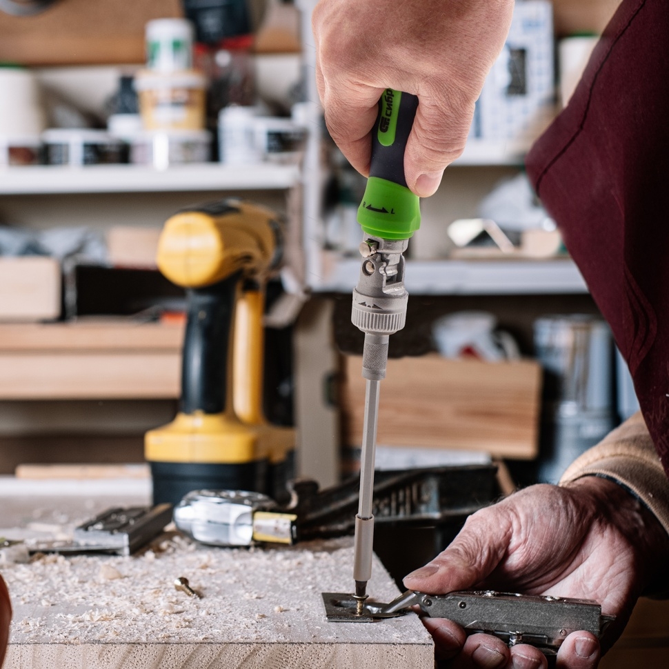 Биты: SL3, SL5, SL6, PH0, PH1, PH2, PZ2, T6, Т10, Т15, Т20, Т25, Т30, H4, H5, H6, SP4, TW 2,3 . 61 предмет из стали CrV, — это универсальные инструменты для частных и профессиональных мастеров. Отвертка с поворотной головой позволяет осуществлять монтаж/демонтаж крепежа в труднодоступных местах, а отвертка для точных работ пригодится при ремонте техники и приборов с микровинтами. Насадки из хромованадиевой стали обладают высоким ресурсом и износостойкостью, поэтому рассчитаны на интенсивную эксплуатацию. Реверсивный механизм повышает удобство эксплуатации, позволяя работать одной рукой. Обе отвертки оснащены двухкомпонентными рукоятками, посредством чего обеспечивается надежный хват без проскальзывания инструмента. Набор удобно брать на выездные работы, т.к. он продается в пластиковом кейсе с ручкой для транспортировки.
