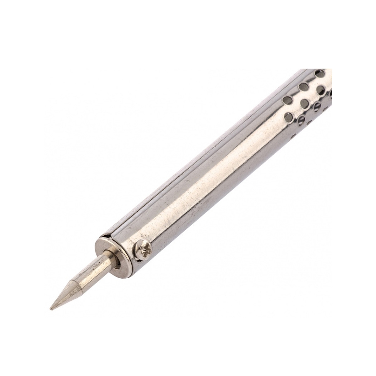 Паяльник с деревянной ручкой 30 Вт, Sparta используется для пайки электропроводки, микрочипов, электрических схем и транзисторов. Нагревательным элементом является нихромовая спираль, что уменьшает вероятность поломки прибора в результате падения или удара. Конусовидный наконечник позволяет успешно решать поставленные задачи. Жало легко очищается, а в случае выхода из строя его легко можно заменить. Защитное покрытие улучшает прилипание припоя и защищает наконечник от коррозии. Паяльник пригодится для ремонта электроники, бытовой техники, а также обслуживания автомобилей и проведения электромонтажных работ. Преимущества Медное жало быстро разогревается, поэтому прибор не требует длительной подготовки к работе. Материал рукоятки — древесина с низкой теплопроводностью, поэтому она меньше нагревается по сравнению с пластиковыми. Деревянная рукоятка удобно лежит в руке, обеспечивая комфорт при длительной работе. В комплект входит подставка для размещения на ней прибора во время работы.