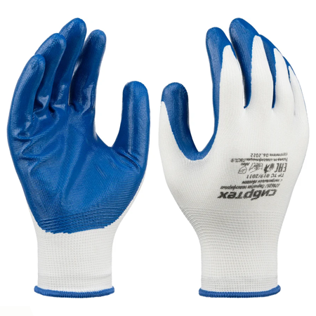 Перчатки Сибртех из полиэфира с нитрильным покрытием защищают руки во время хозяйственных, ремонтных и строительных работ. Они предохраняют кожу от механических повреждений и загрязнений на производстве.
