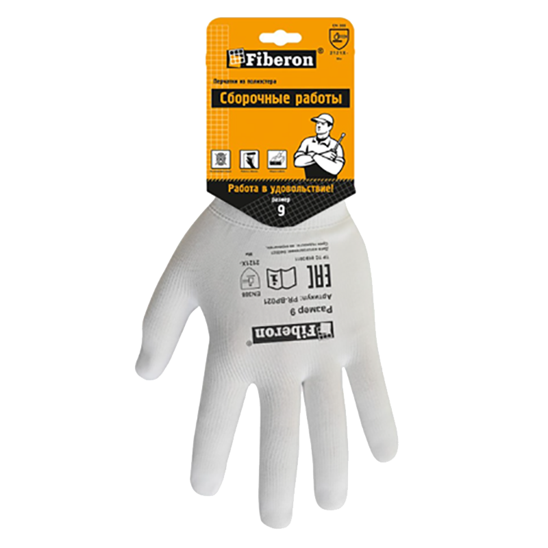 Перчатки Сборочные работы Декор PR-BP021 полиэстер, белые, размер 9 (L), Fiberon