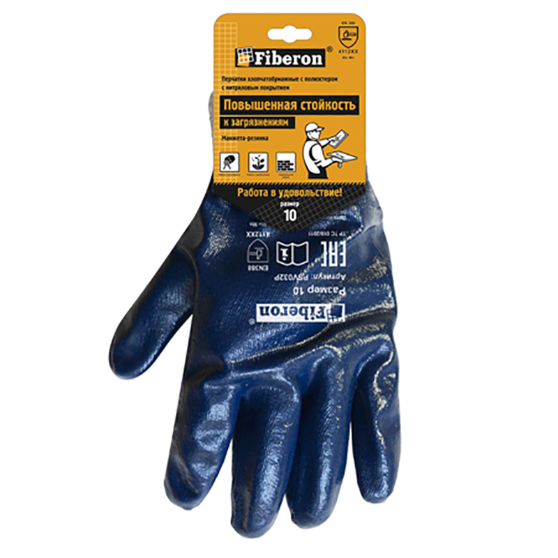 Перчатки Стойкость к загрязнениям Монолит хлопок полиэстер, нитрил. покрыт.10(ХL), PSV032P, Fiberon