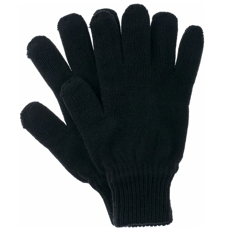 Перчатки трикотажные двойные черные, двойная манжета, 7-10 класс вязки, акриловые, Сибртех