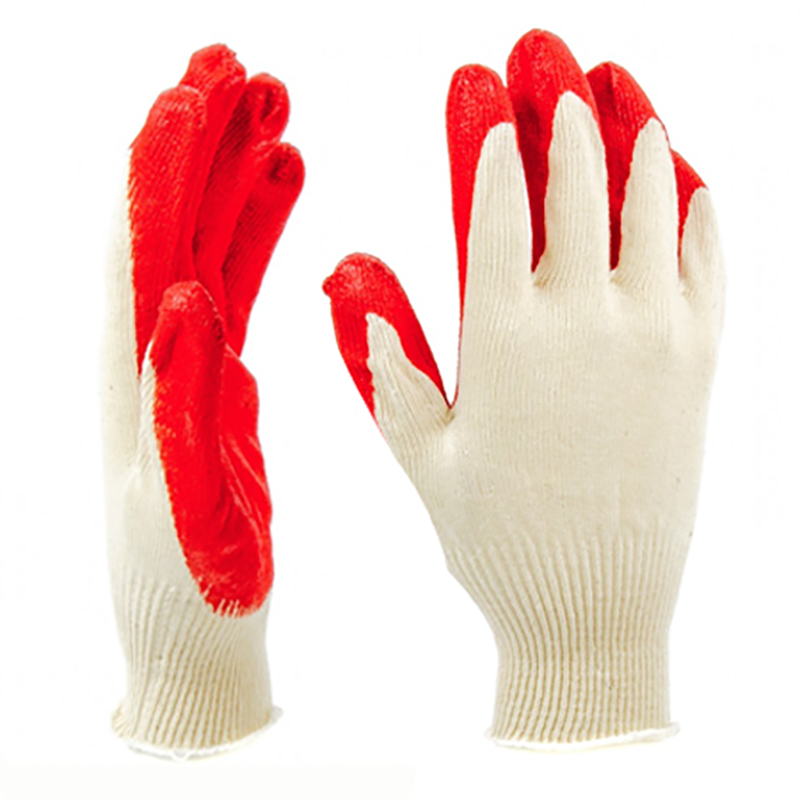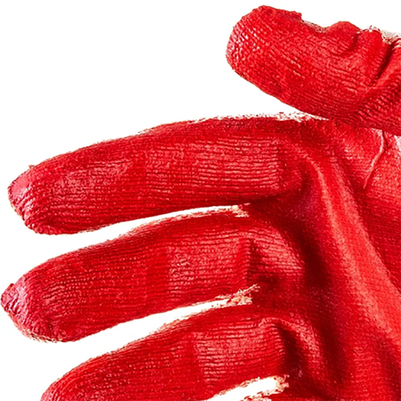 Перчатки надежно защищают руки от порезов, царапин, ссадин и мозолей, а также от грязи. Используются при проведении строительства, ремонта и монтажа оборудования, а также во время ухода за садом и огородом. Тонкая пряжа обеспечивает высокую чувствительность пальцев и не стесняет движений, поэтому перчатки подходят для выполнения точных работ. Преимущества Руки в перчатках не потеют — хлопчатобумажная пряжа с добавлением полиэфирной нити не препятствует воздухообмену. Инструменты и детали не выскальзывают из рук — латексное покрытие обеспечивает надежное сцепление с их поверхностью. Перчатки служат долго — поверхность из латекса устойчива к истиранию. Работа в перчатках комфортна — эластичные манжеты плотно облегают запястья, поэтому перчатки не сползают с рук.