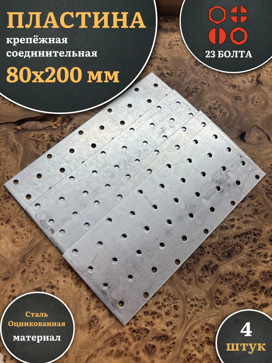 Пластина крепёжная соединительная 80х200 ОЦ, 4 шт.
