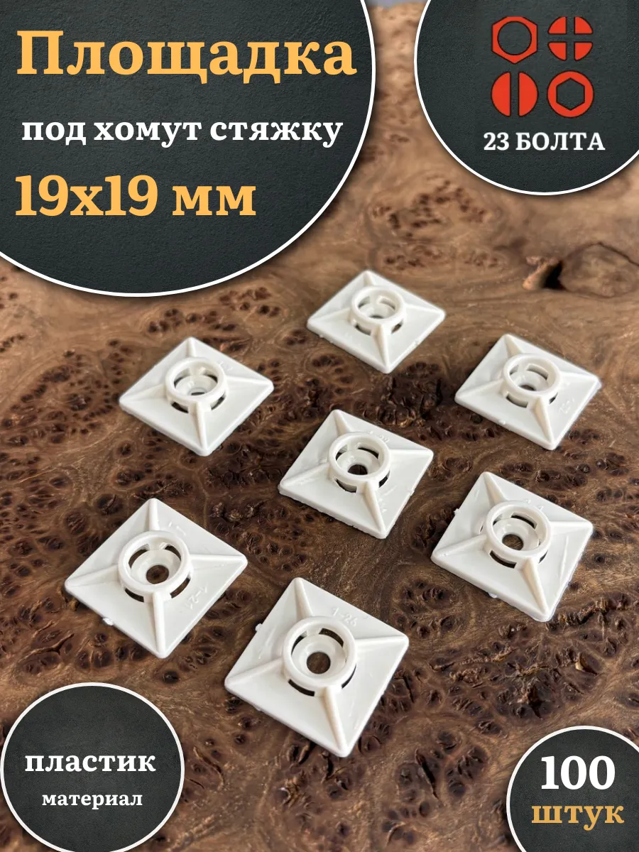 Площадка под хомут стяжку 19х19 мм белая, 100 шт.