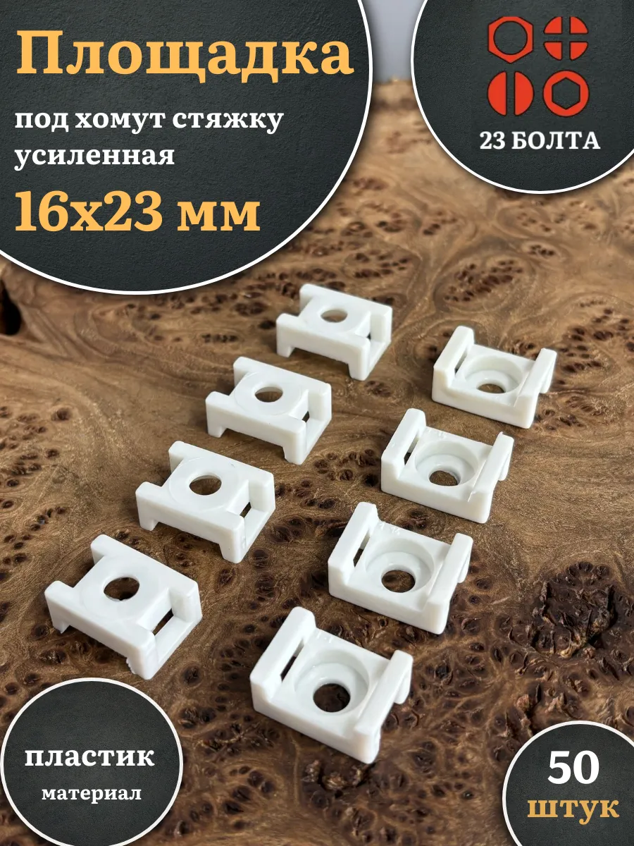 Площадка под хомут стяжку усиленная 16х23 мм белая, 50 шт.