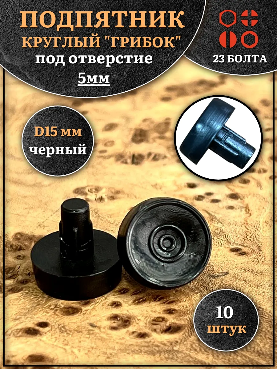 Подпятник гриб мебельный d 15 мм под отверстие 5 мм, 10шт
