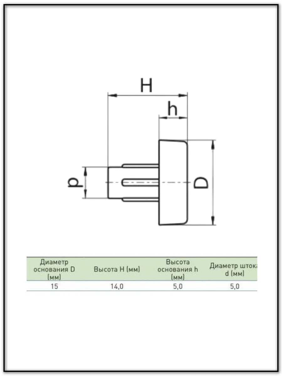 | Подпятник гриб мебельный d 15 мм под отверстие 5 мм, 10шт | 18-0200ф10 | 1 шт. |