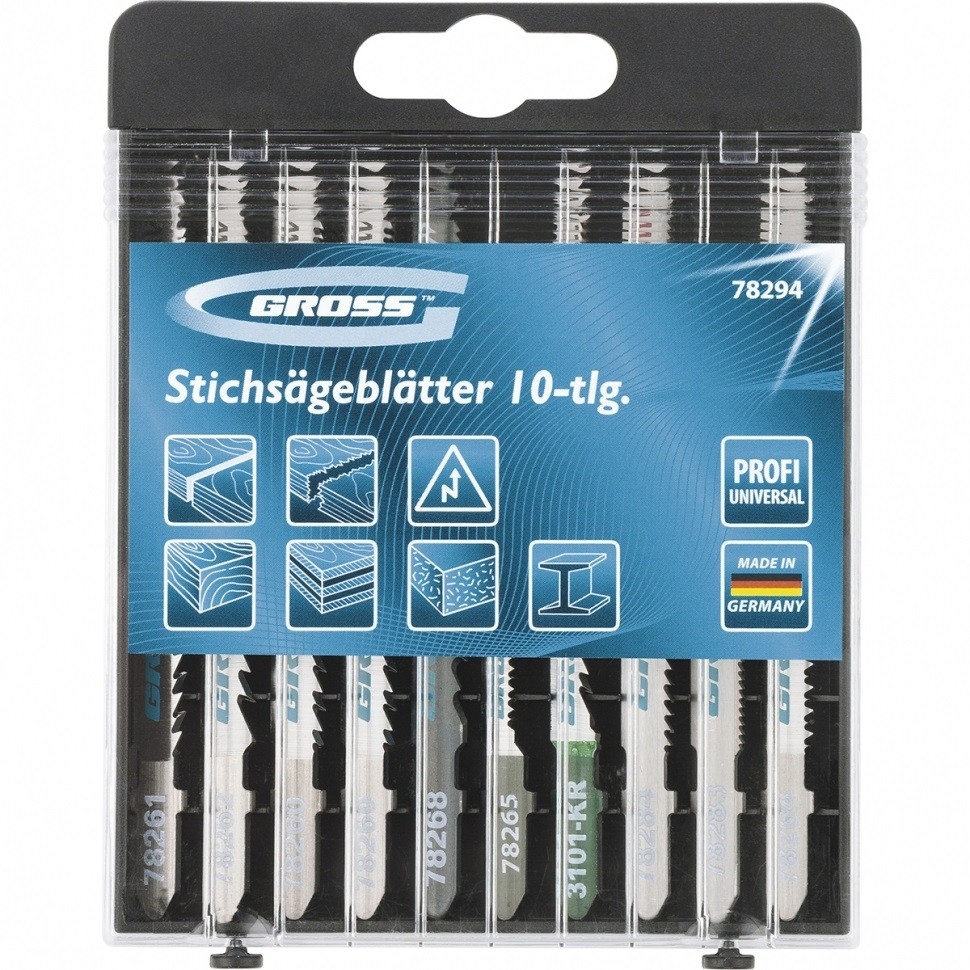 Полотна для эл.лобзика по дереву универсальные, Profi 10шт пластик.кейс Gross