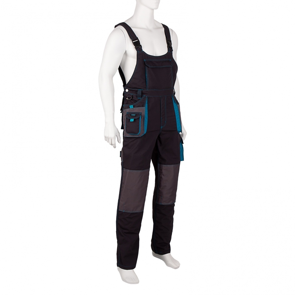 Полукомбинезон Gross 90352 размера M рассчитан на рост 173-179 см и предназначен для защиты рабочего от механических повреждений, ветра и пыли. Может применяться в отапливаемых помещениях или на улице в теплое время года. Изготовлен из смесовой ткани с 35%-м содержанием хлопка, которая не препятствует воздухообмену, поэтому в полукомбинезоне комфортно работать. На 65% ткань состоит из полиэстера, что обеспечивает износостойкость спецодежды. В 14 карманах можно разместить инструменты и необходимые мелочи. Полукомбинезон необходим строителям, электрикам, садовникам, сотрудникам автосервисов, а также рабочим других специальностей. Эластичный пояс комфортно прилегает к телу, не сковывая движений. Имеются карманы на липучках, поэтому мобильный телефон и другие мелкие предметы не потеряются. Специальные нашивки с водоотталкивающей пропиткой защищают боковые карманы от истирания, продлевая срок службы полукомбинезона. На коленной части предусмотрены карманы для амортизационных вкладышей.