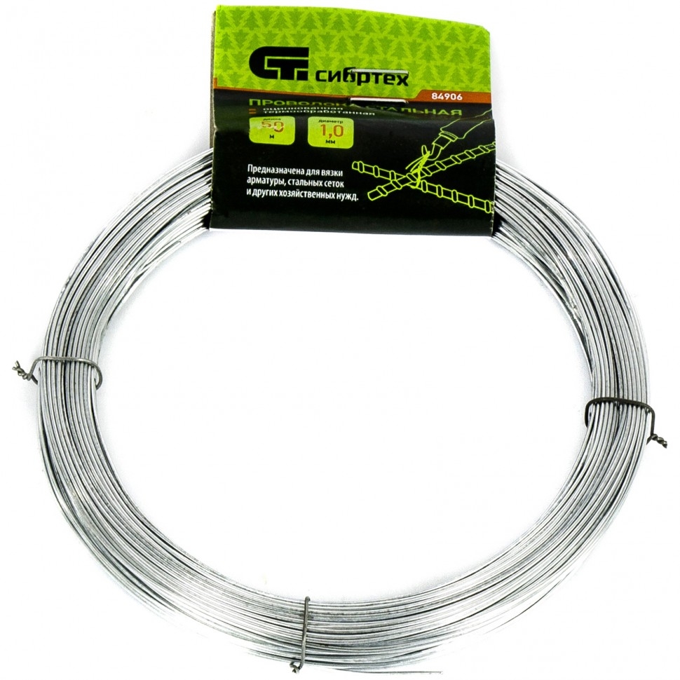 Проволока стальная оцинкованная 50 м термообработанная 1,0 мм, Сибртех