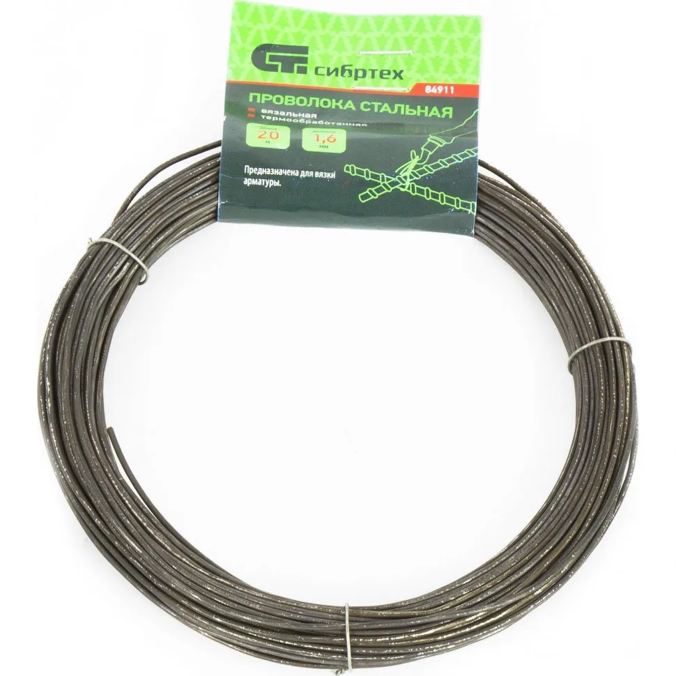 Проволока стальная вязальная 20 м термообработанная 1,6 мм, Сибртех