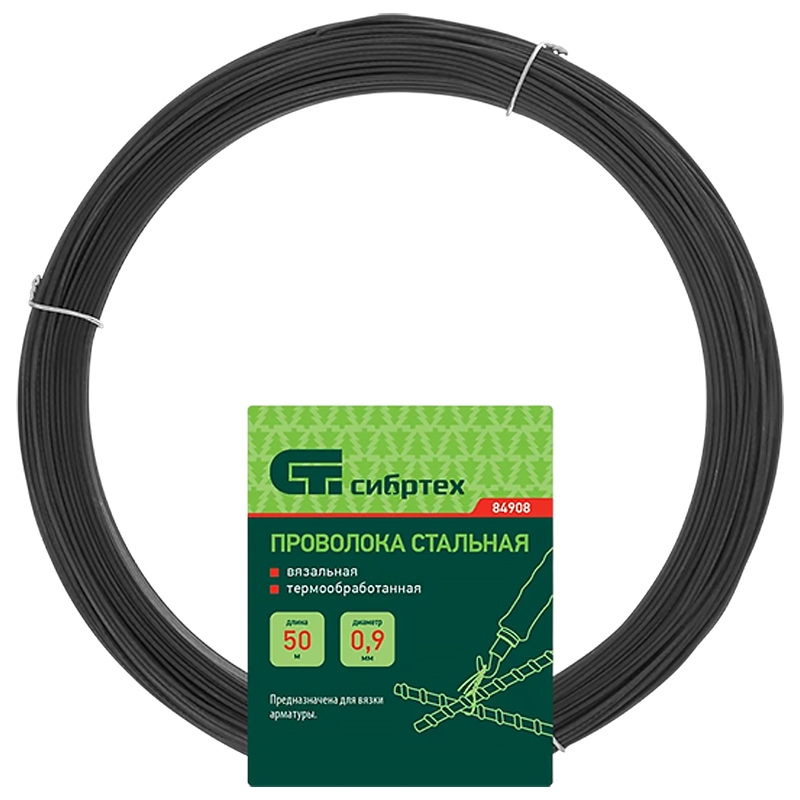 Проволока стальная вязальная 50 м термообработанная 0,9 мм, Сибртех
