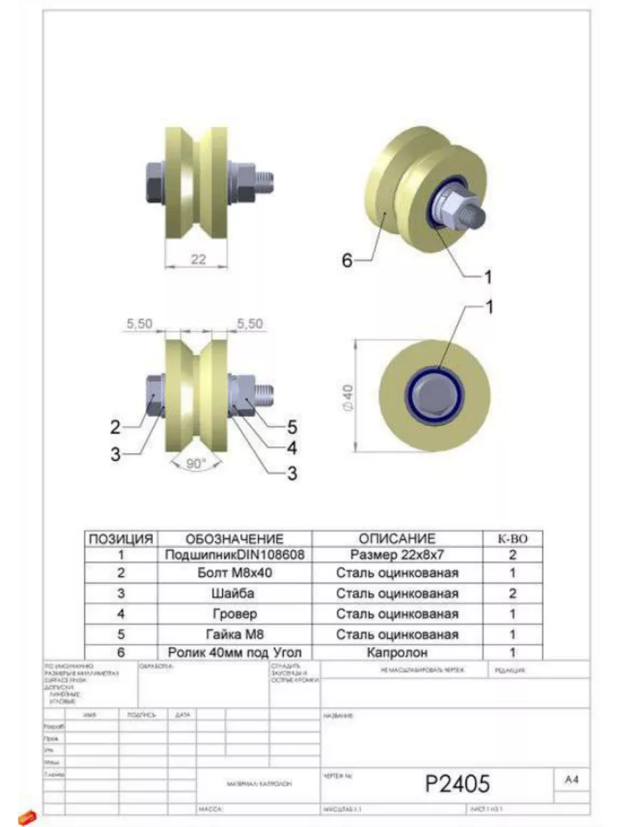 Ролик для откатных ворот d40мм под угол ,капролон 4 шт.