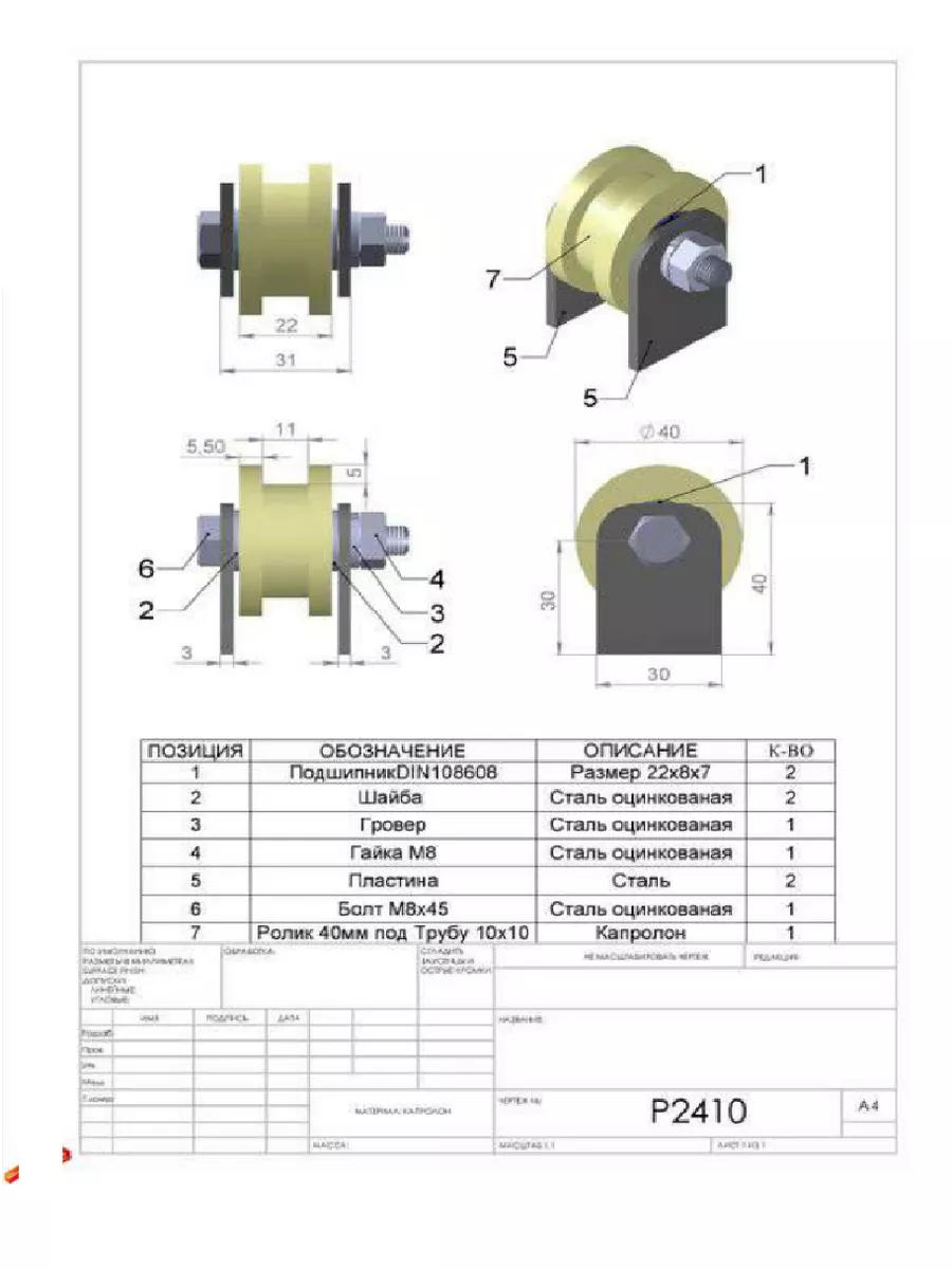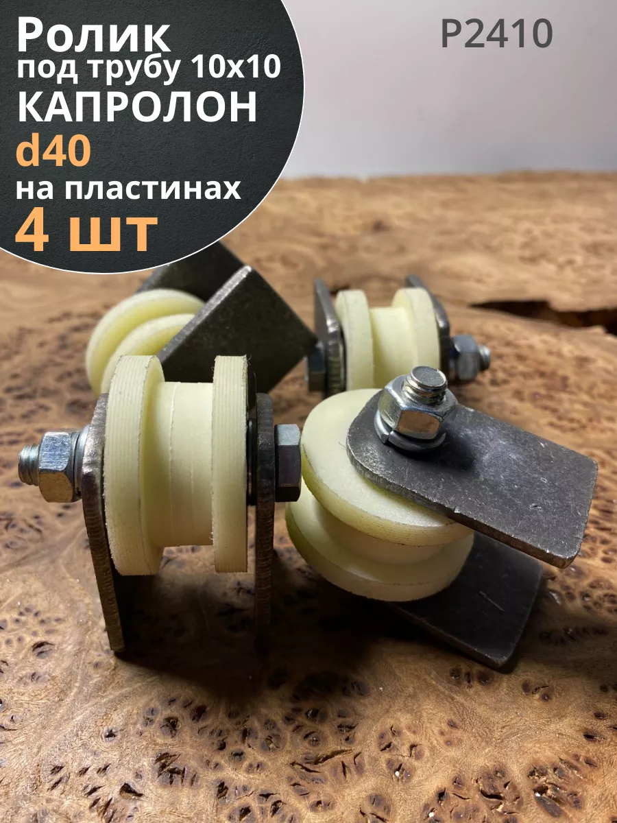 Ролик на пластинах d 40 мм, под трубу 10х10,капролон 4 шт.