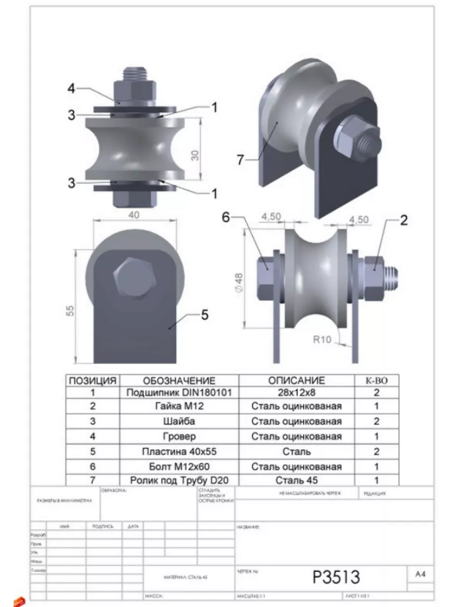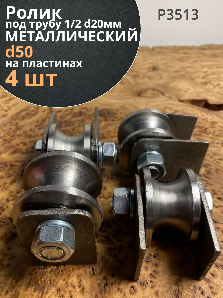 Ролик на пластинах d 50 мм под трубу 1/2 d20,металл 4шт.