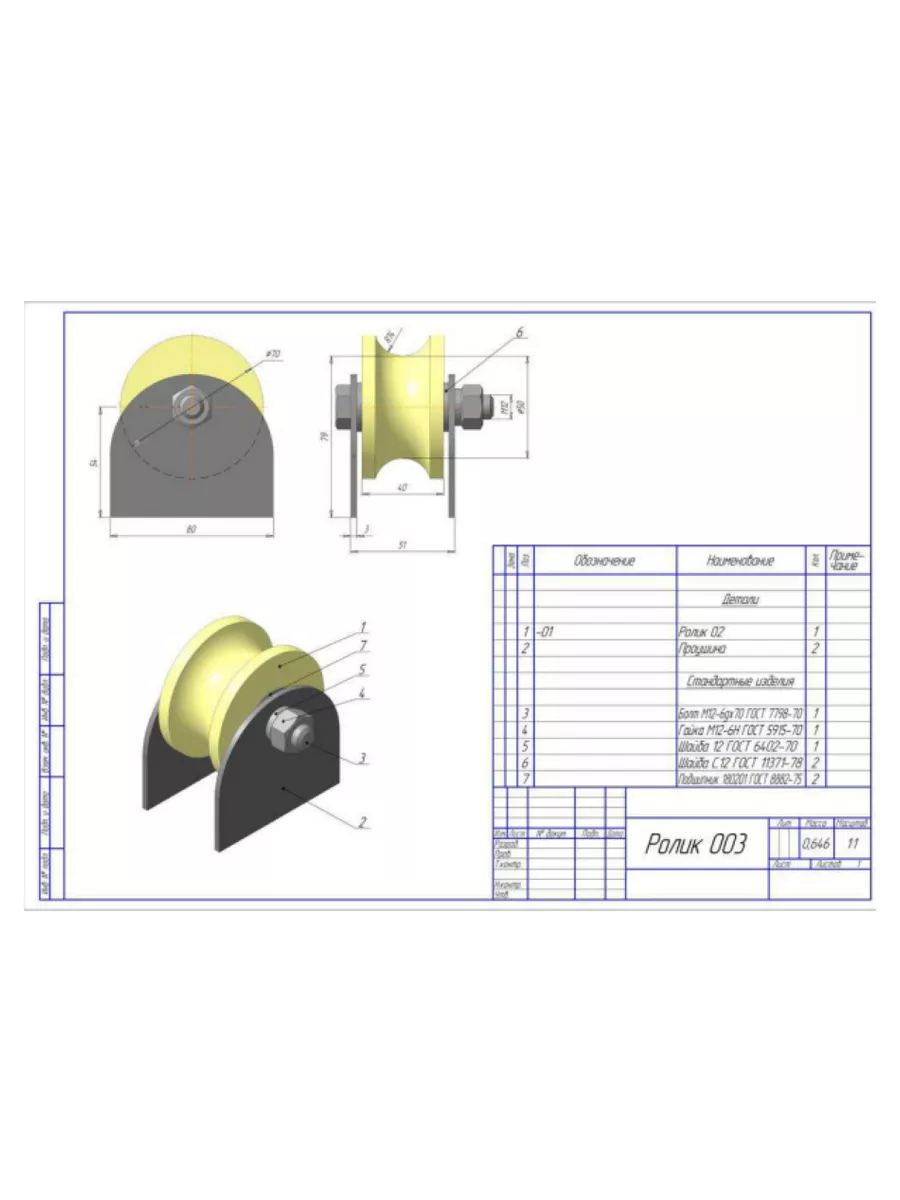 Ролик на пластинах d 70 мм, под трубу 3/4, капролон,4 шт
