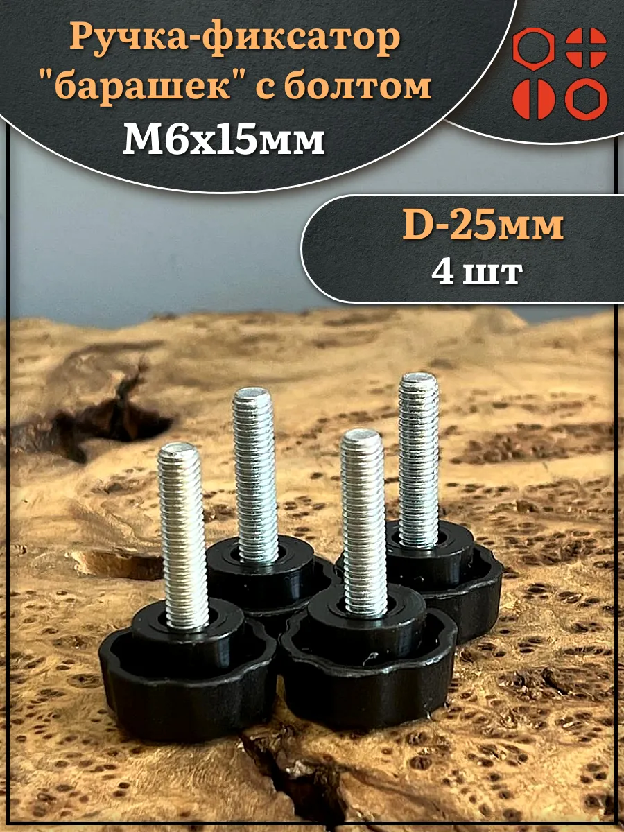 Ручка фиксатор барашек d 25 с болтом М6х15, 4 шт.