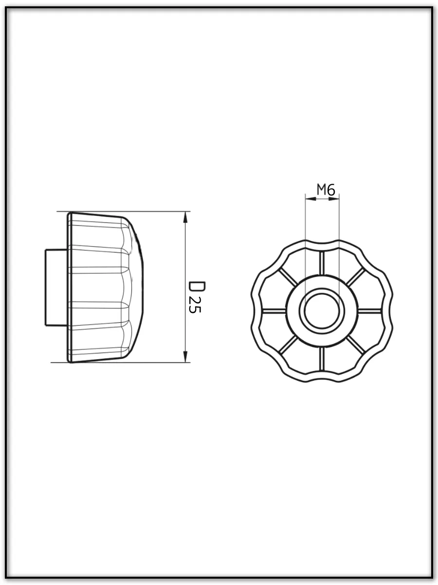 Ручка фиксатор барашек d 25 с гайкой М6, 2 шт.