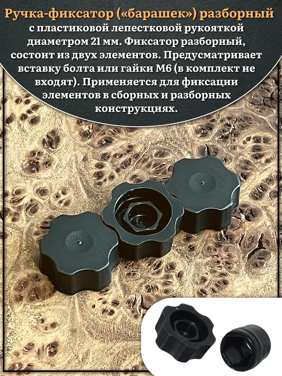 | Ручка фиксатор барашек разборный d21 болт М6 (не в комплекте), 50 шт. | 35-0110ф50 | 1 шт. |