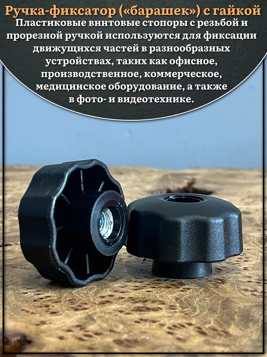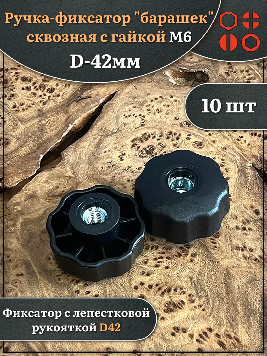 Ручка фиксатор барашек сквозная d 42 мм с гайкой М6, 10 шт.