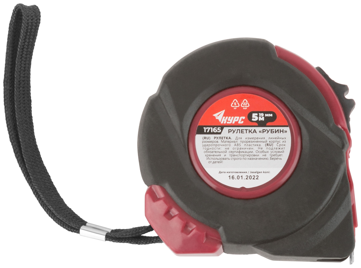 Рулетка Рубин, прорезин.корп., 5м х 19мм
