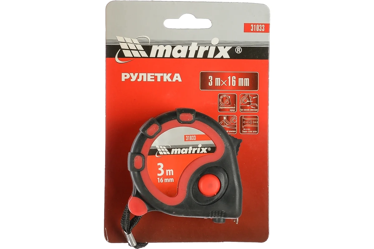 Рулетка Status, двухкомп.корпус, 3 фиксации ленты 3м х16мм Matrix