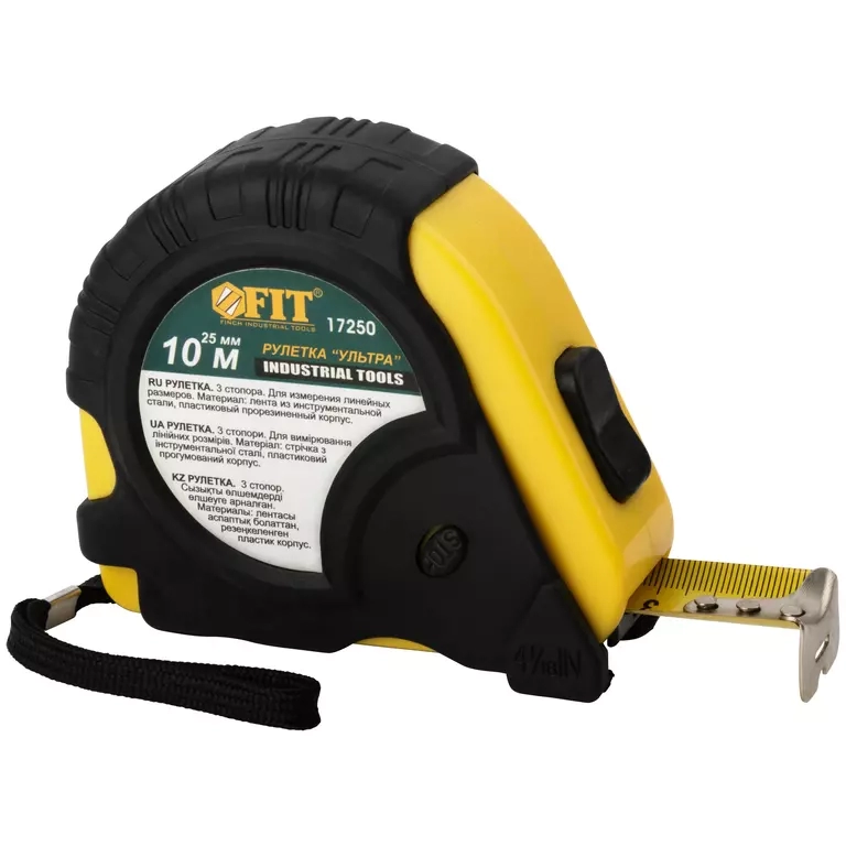 Рулетка Ультра, прорезин.корп., тройной стопор 10м х 25мм