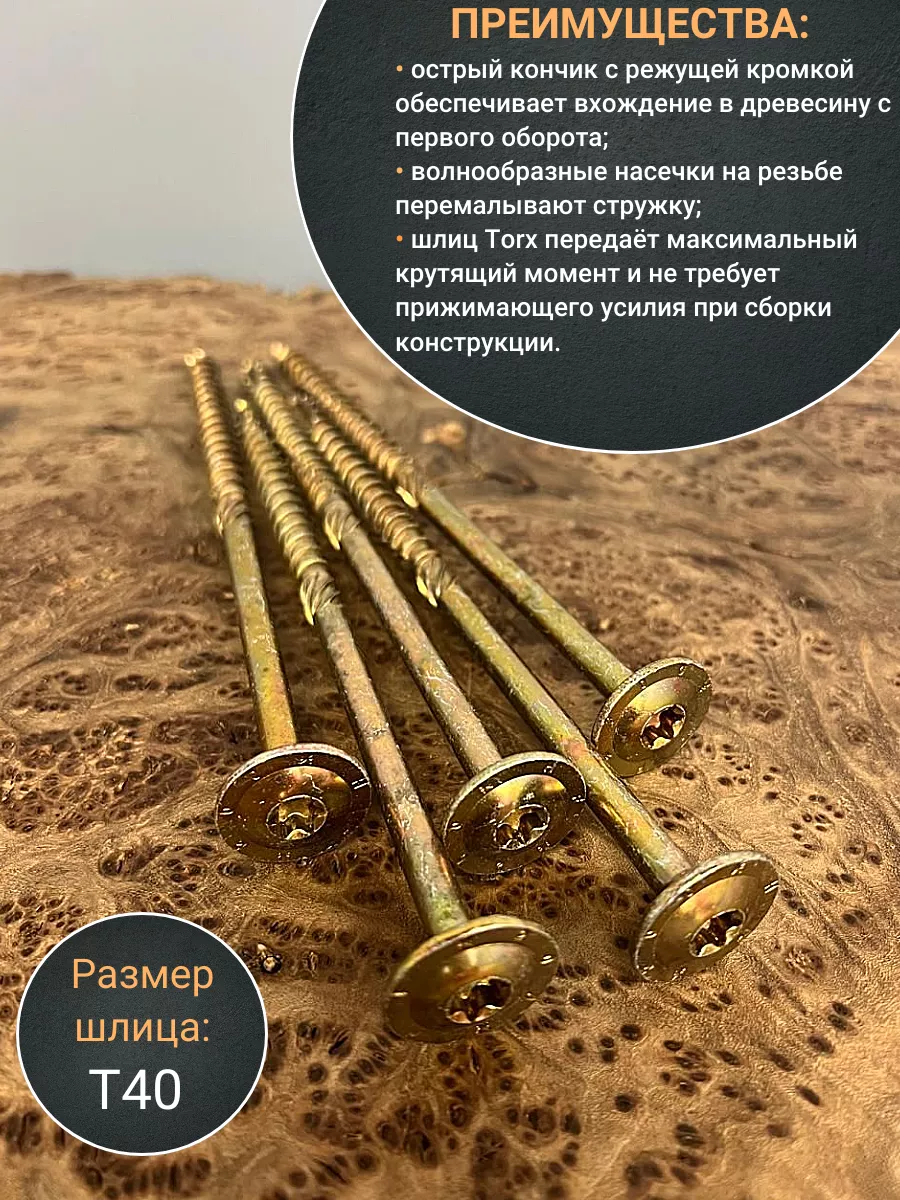 Саморез 10х200 по дереву с прессшайбой Тorx, ЖЦ, 5 шт.,