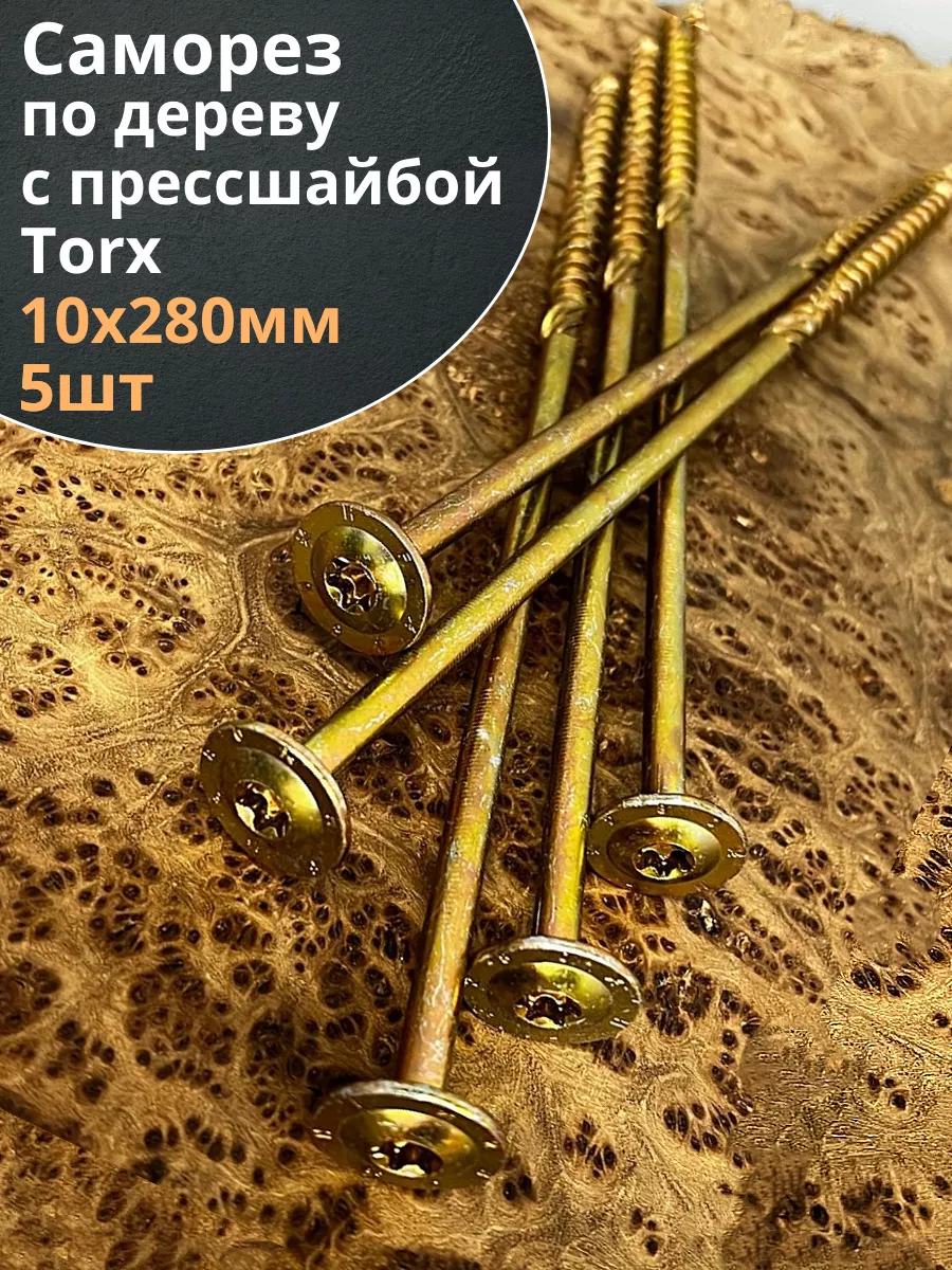 Саморез 10х280 по дереву с прессшайбой Тorx, ЖЦ, 5 шт.