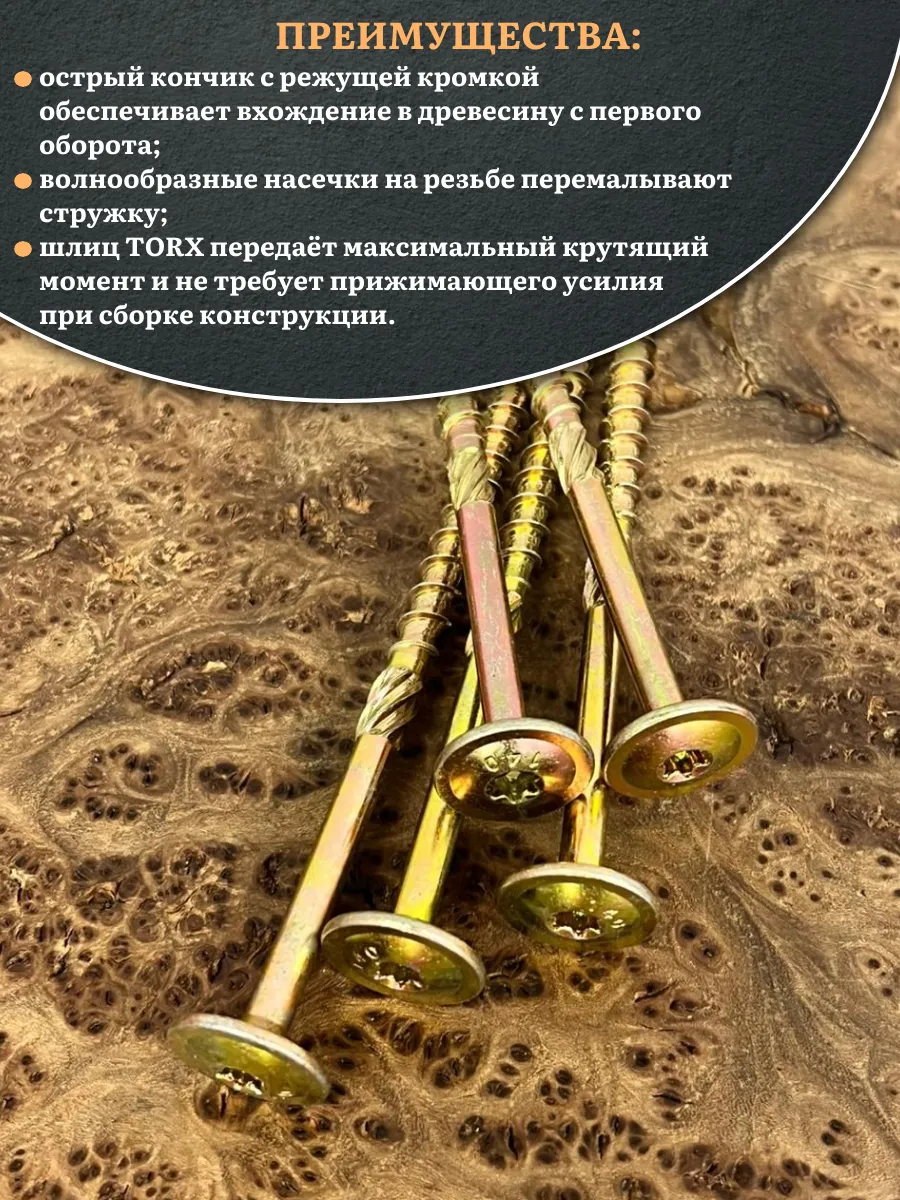 Саморез 6х120 по дереву с прессшайбой Тorx, ЖЦ, 5 шт.