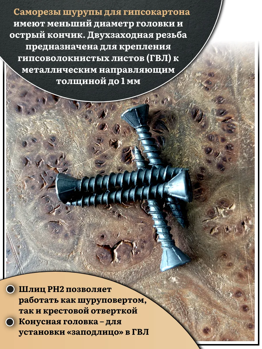 Саморез для крепления ГВЛ (гипсокартон) 3,9х30, чёрный