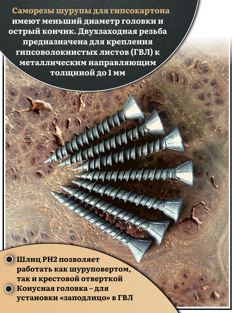 | Саморез для крепления ГВЛ (гипсокартон) 3,9х35, чёрный 1 кг | БП-00002649кг | 1 шт. |