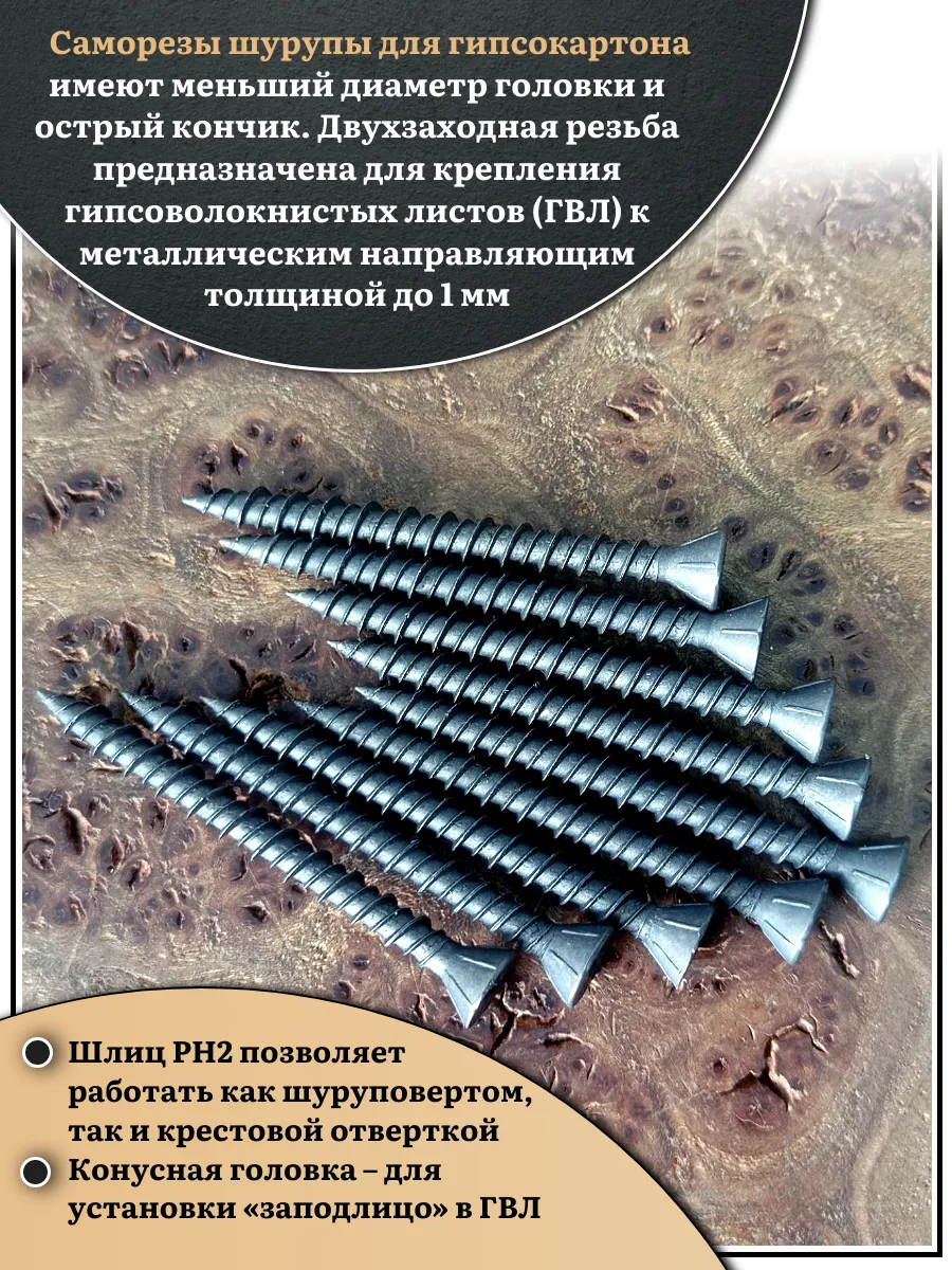 Саморез для крепления ГВЛ (гипсокартон) 3,9х45, чёрный
