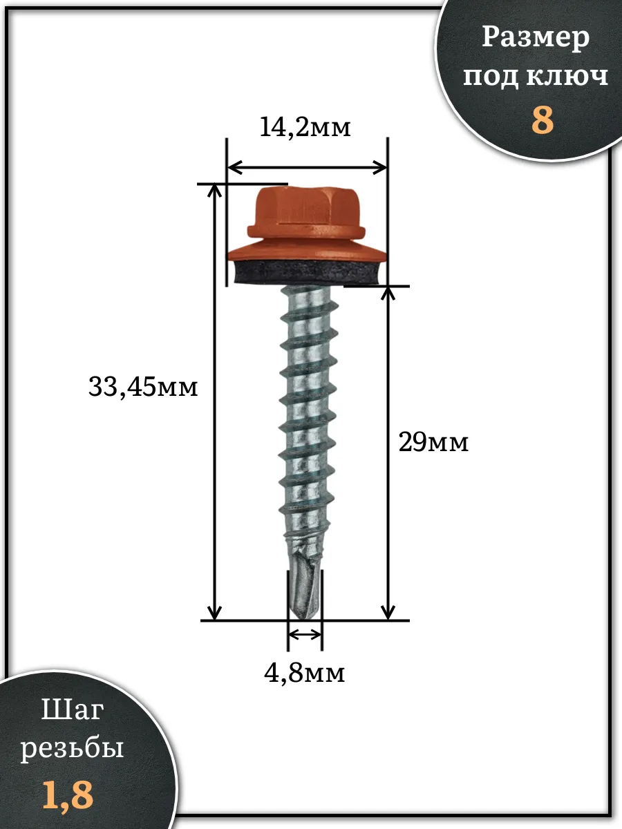 Саморез кровельный, 4,8х29 медно-коричневый RAL8004 1000 шт