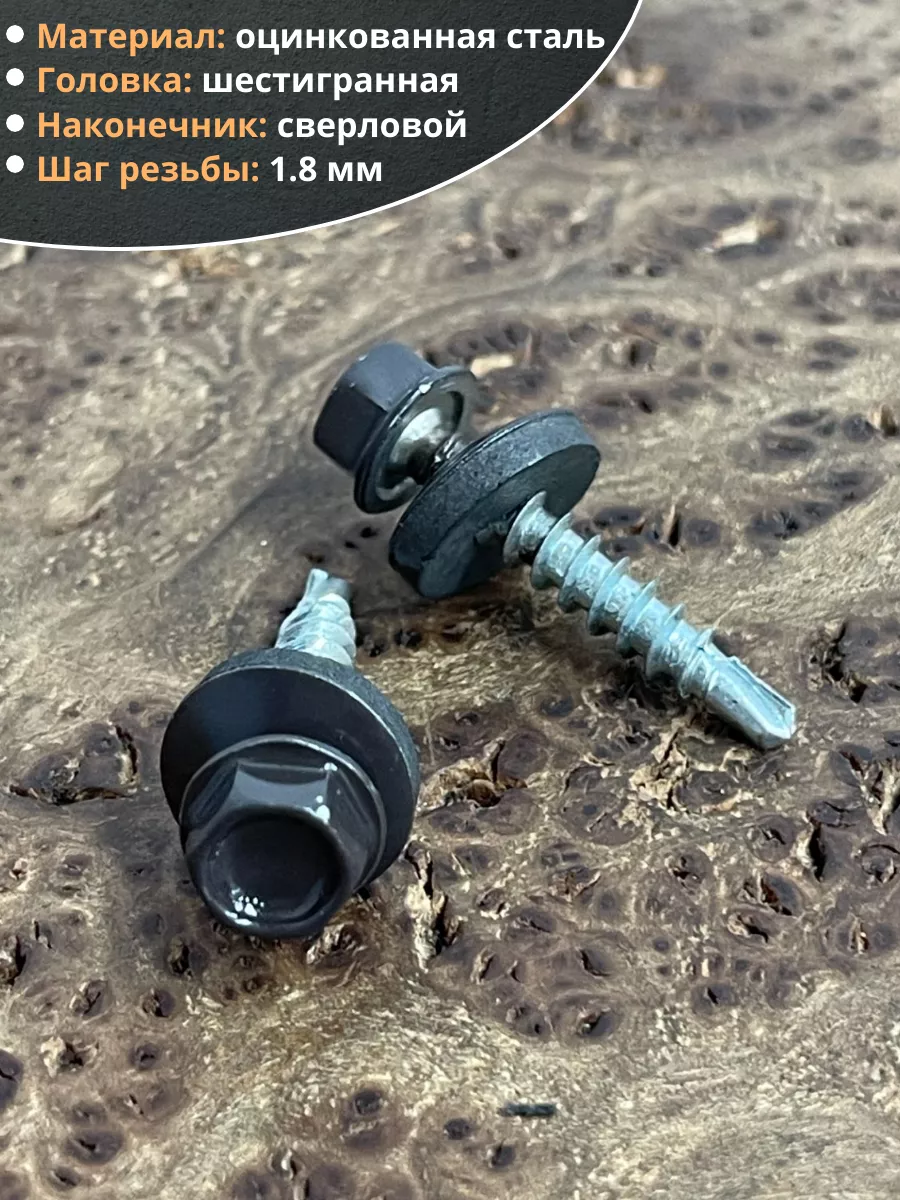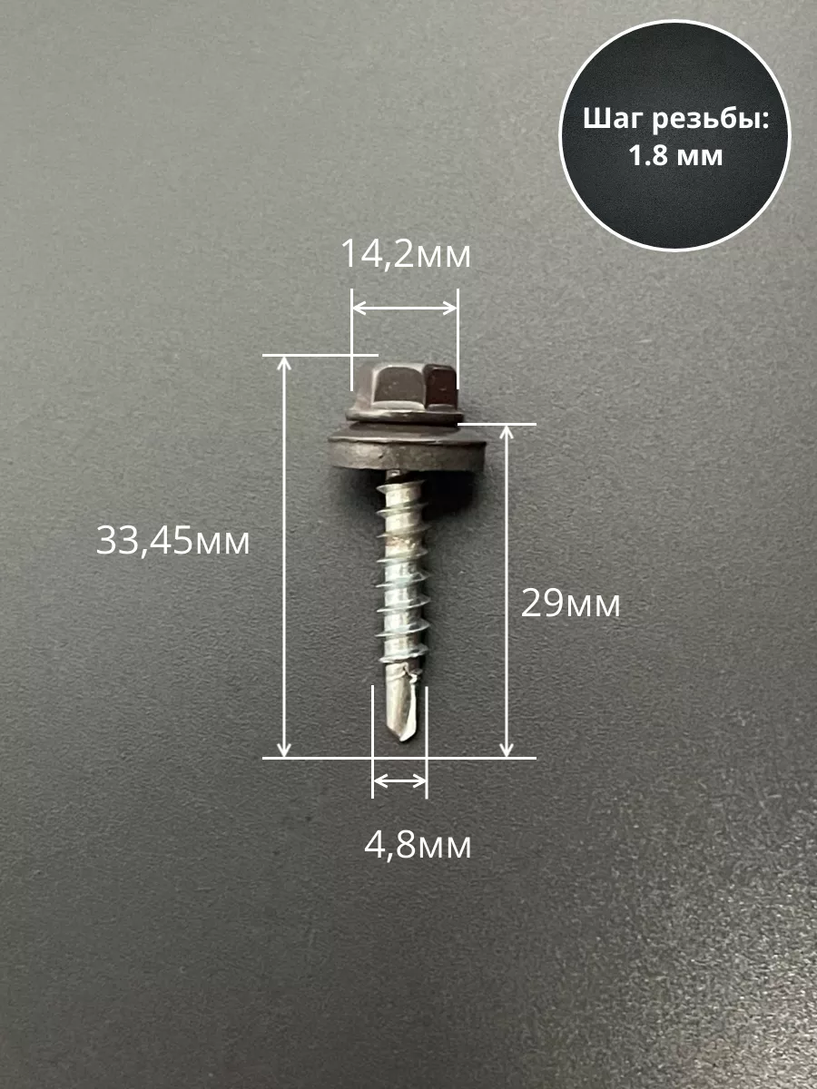 Саморез кровельный, 4,8х29 серо-коричневый RAL8019 50 шт