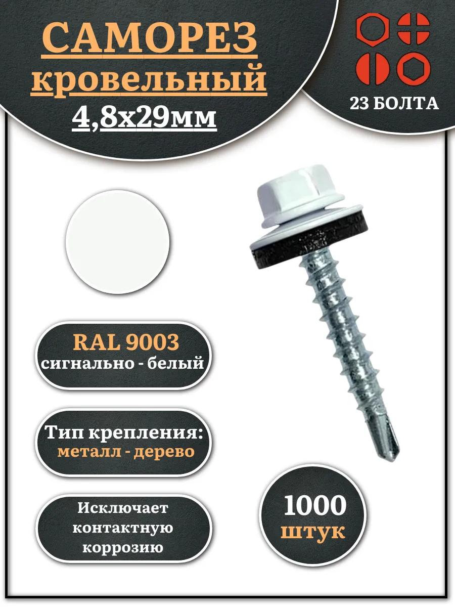 Саморез кровельный, 4,8х29 сигнально-белый RAL9003 1000 шт