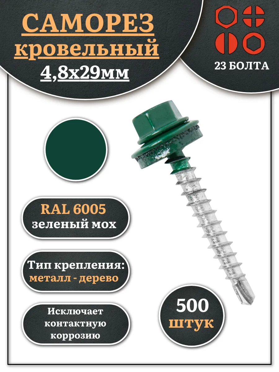 Саморез кровельный, 4,8х29 зеленый мох RAL6005 500 шт