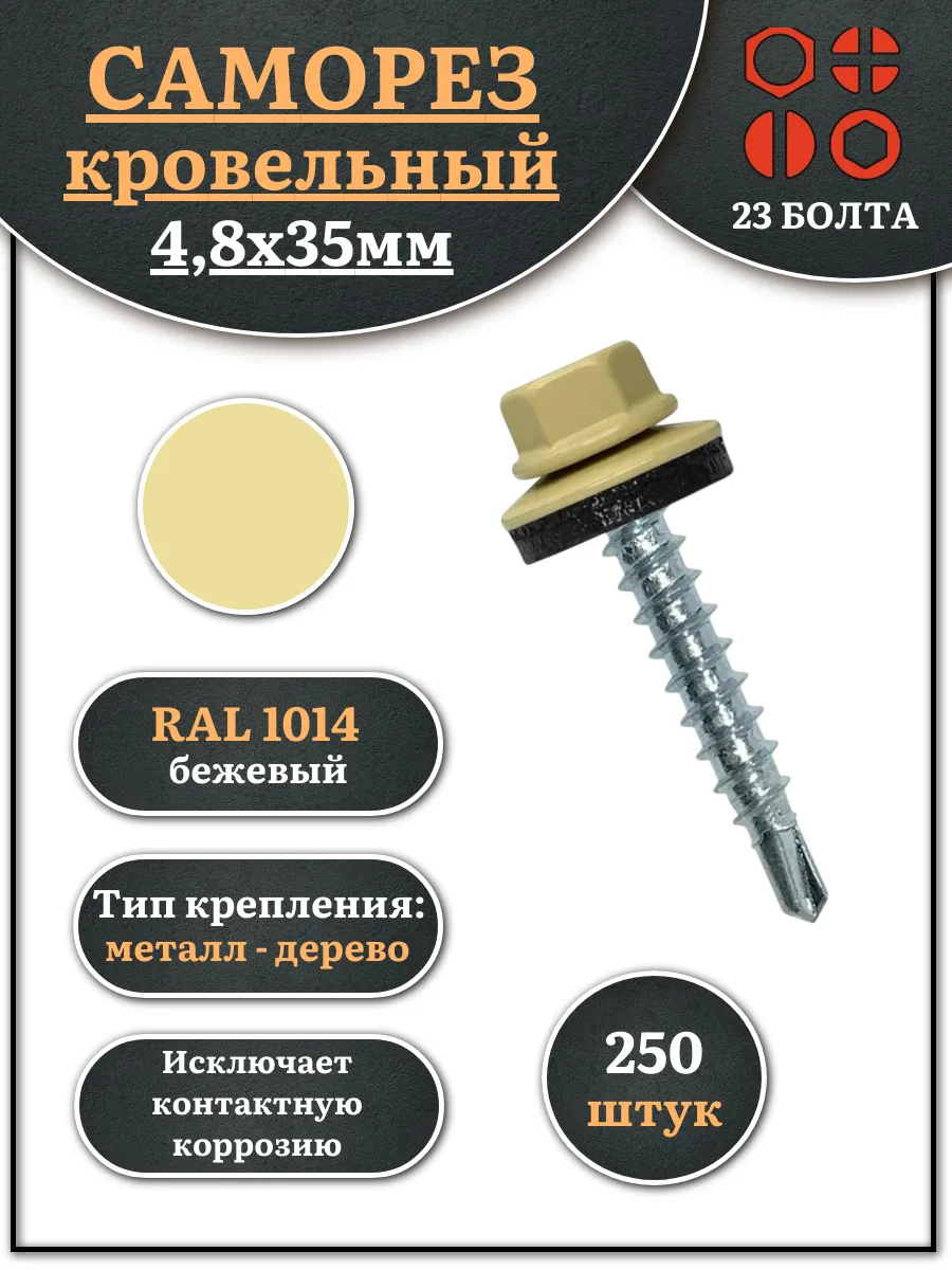 Саморез кровельный, 4,8х35 бежевый RAL1014 250 шт