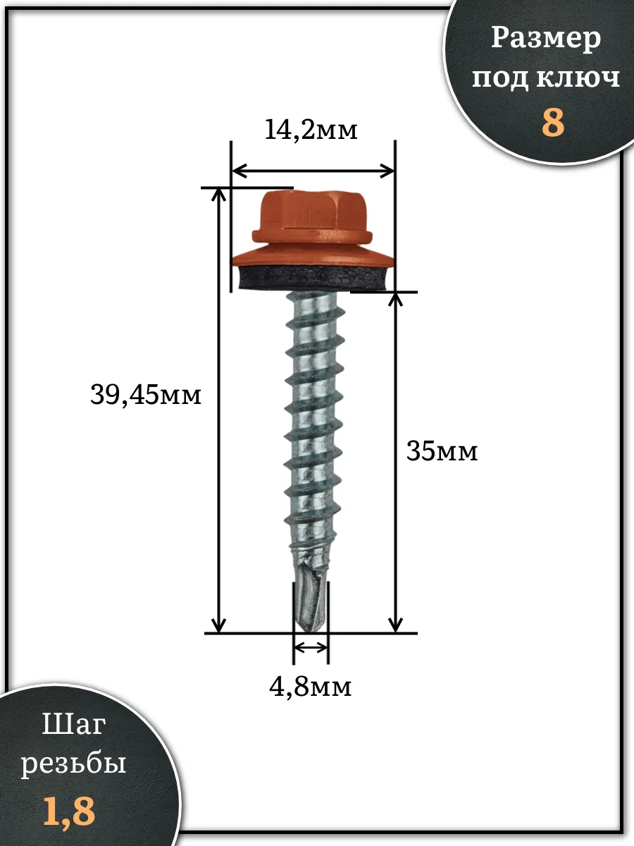 Саморез кровельный, 4,8х35 медно-коричн. RAL8004 1000 шт