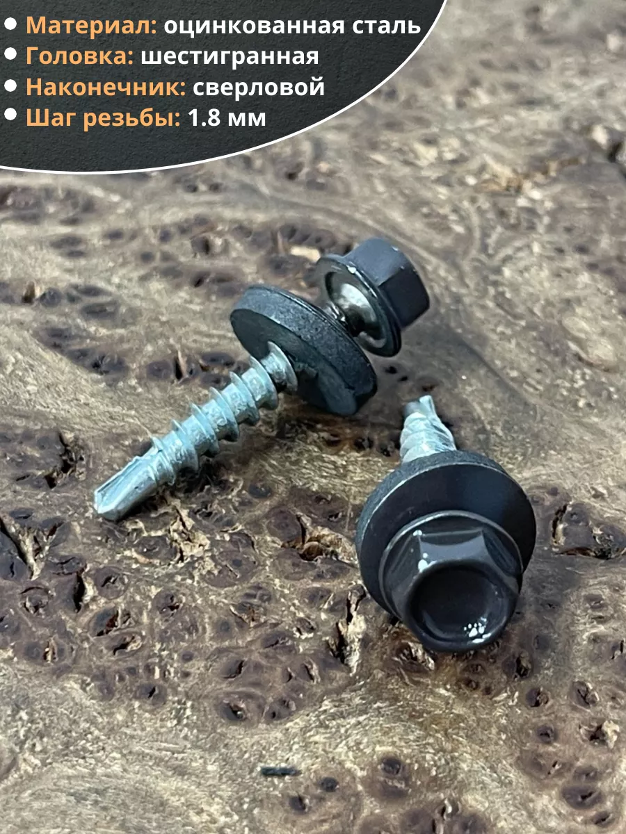 Саморез кровельный, 4,8х35 серо-коричневый RAL8019 50 шт